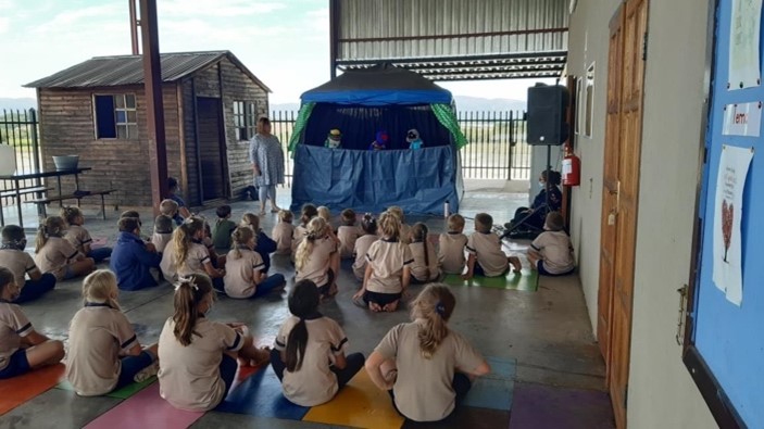 A group of a few of our team members held a puppet show with a Christian storyline for the preschool to grade 3 students. They also had a small activity that they completed together.
